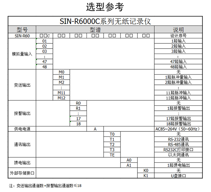 SIN-R6000C系列彩色無紙記錄儀48路(萬能輸入(可組態選擇輸入:標準電壓、標準電流、熱電偶、熱電阻、頻率、毫伏等)??蓭?8路報警輸出,12個變送輸出,RS232/485通訊接口,以太網接口,微型打印機接口和USB接口,SD卡插座;可提供傳感器配電;具有強大的顯示功能,實時曲線顯示,歷史曲線追憶,棒圖顯示,報警列表顯示。人性化的外觀設計、良好的功能體現、可靠的硬件品質、精湛的制造工藝,使SIN-R6000C具有更高的性能價格比。